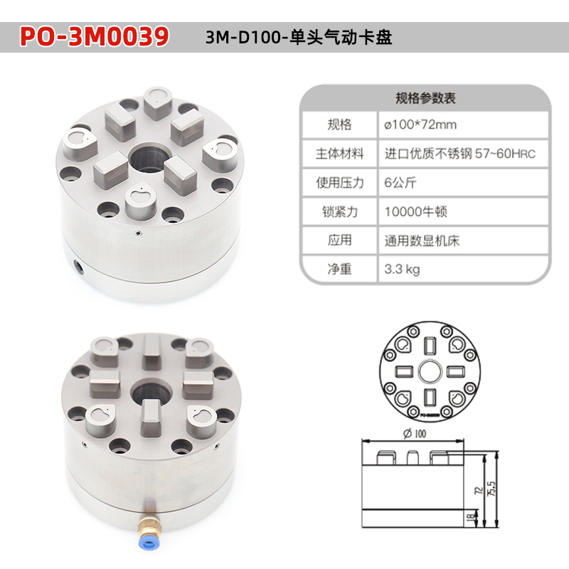 PO-3M0039 D100 單頭氣動卡盤 三次元夾具 電極夾具