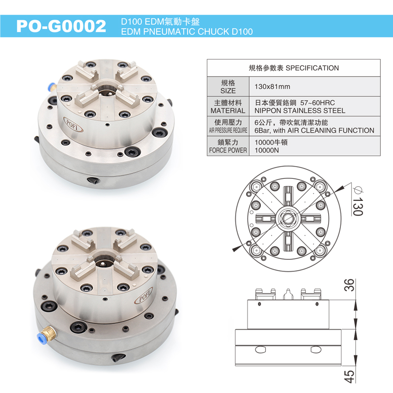 PO-G0002 D100 EDM氣動卡盤