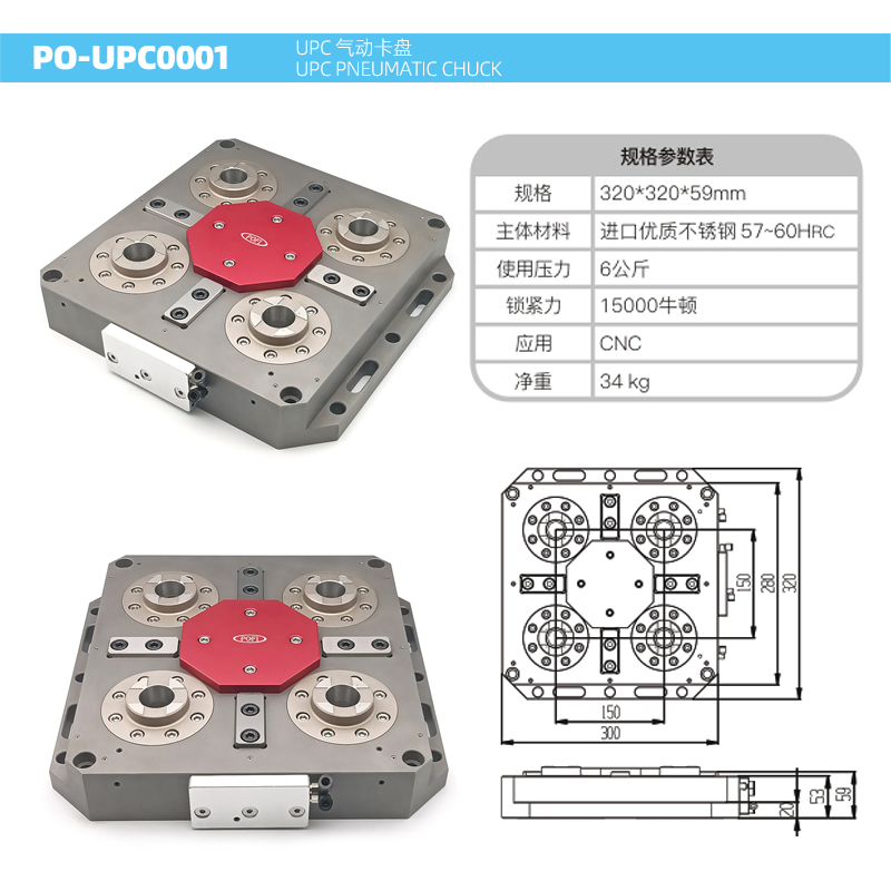 PO-MTS0002 D130四頭零點氣動卡盤(中心距200)